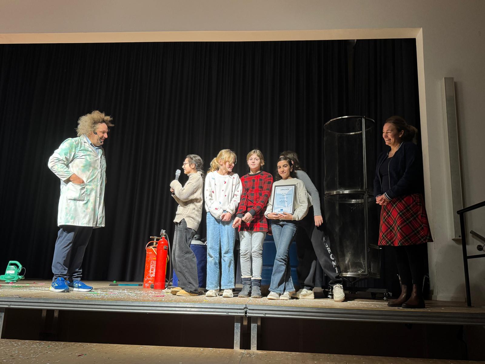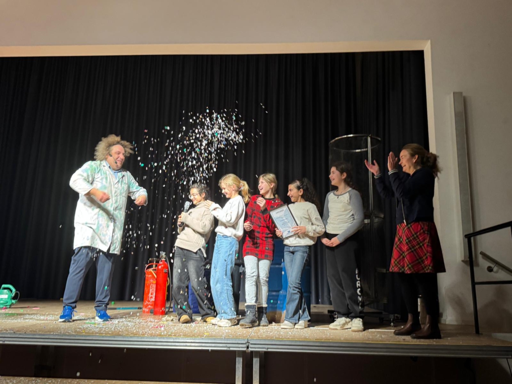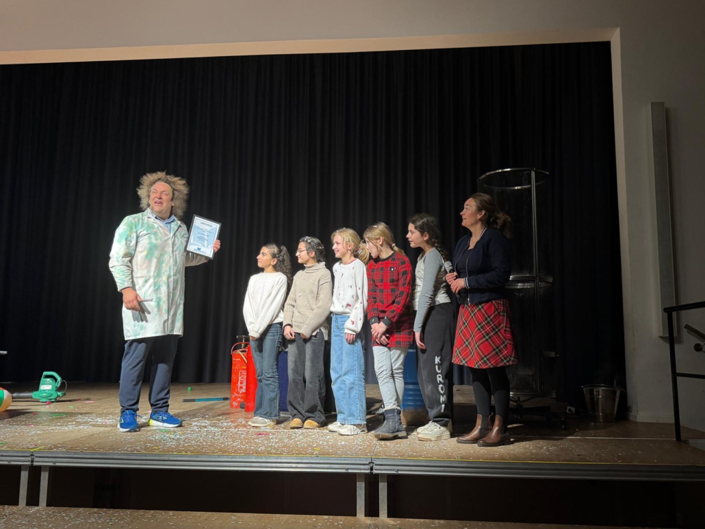 Der Zauberer, Entertainer und Wissenschaftscomedian Konrad Stöckel war mit seiner Show „Wenn´s stinkt und kracht ist´s Wissenschaft“ zu Gast in Wilhelmshaven. Am Neuen Gymnasium Wilhelmshaven begeisterte er Schülerinnen und Schüler mit witzigen und überraschenden Versuchen und Live-Experimenten. Im Anschluss der Show durften wir Herrn Stöckel zum Vereinsbotschafter ernennen.